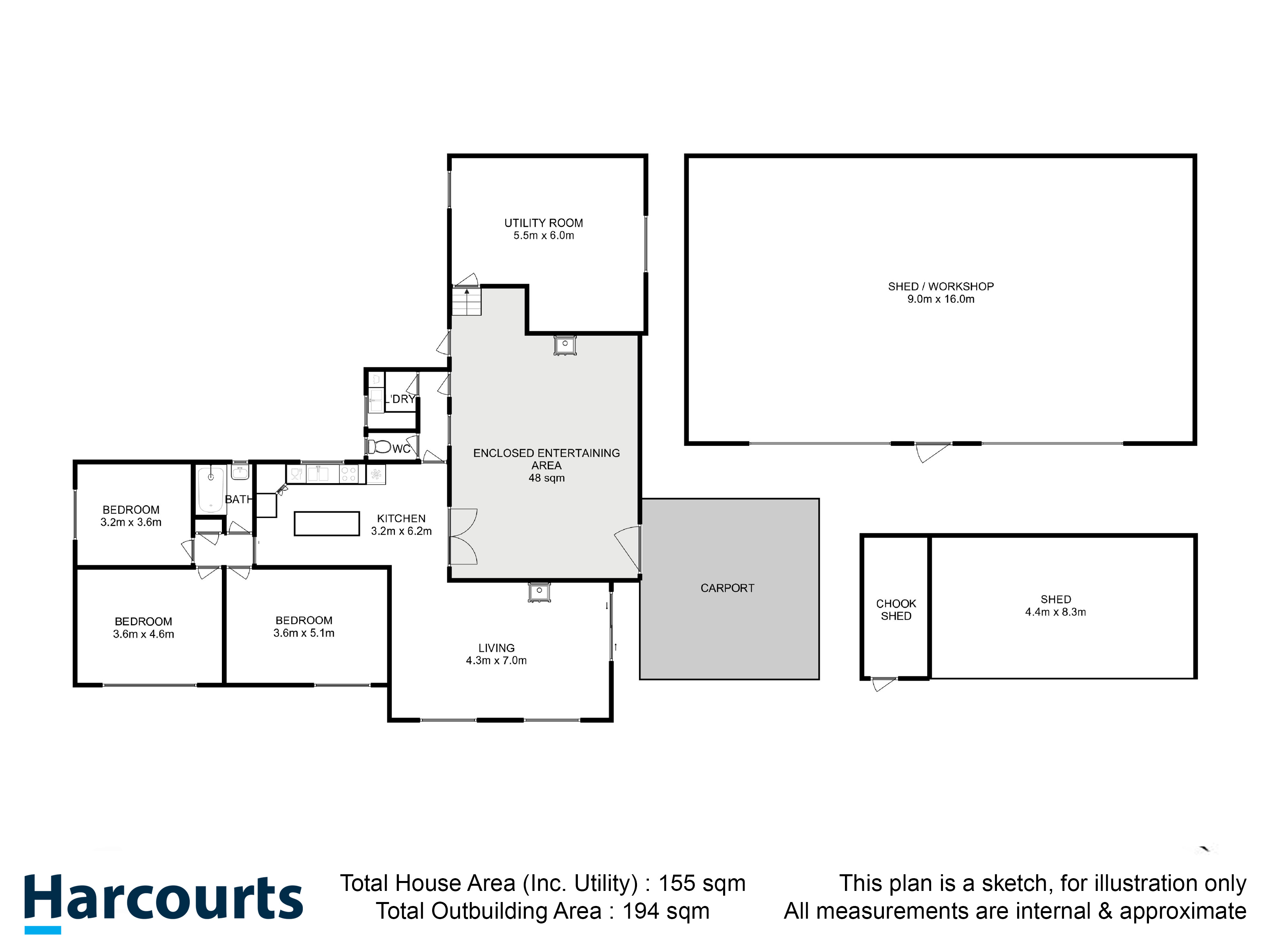 The oversized workshop measures 9 x 16m in size boasting a generous space for cars, a boat or a caravan and still have room for a workshop or get serious about your hobby. There is also a double carport with direct access into the house itself.