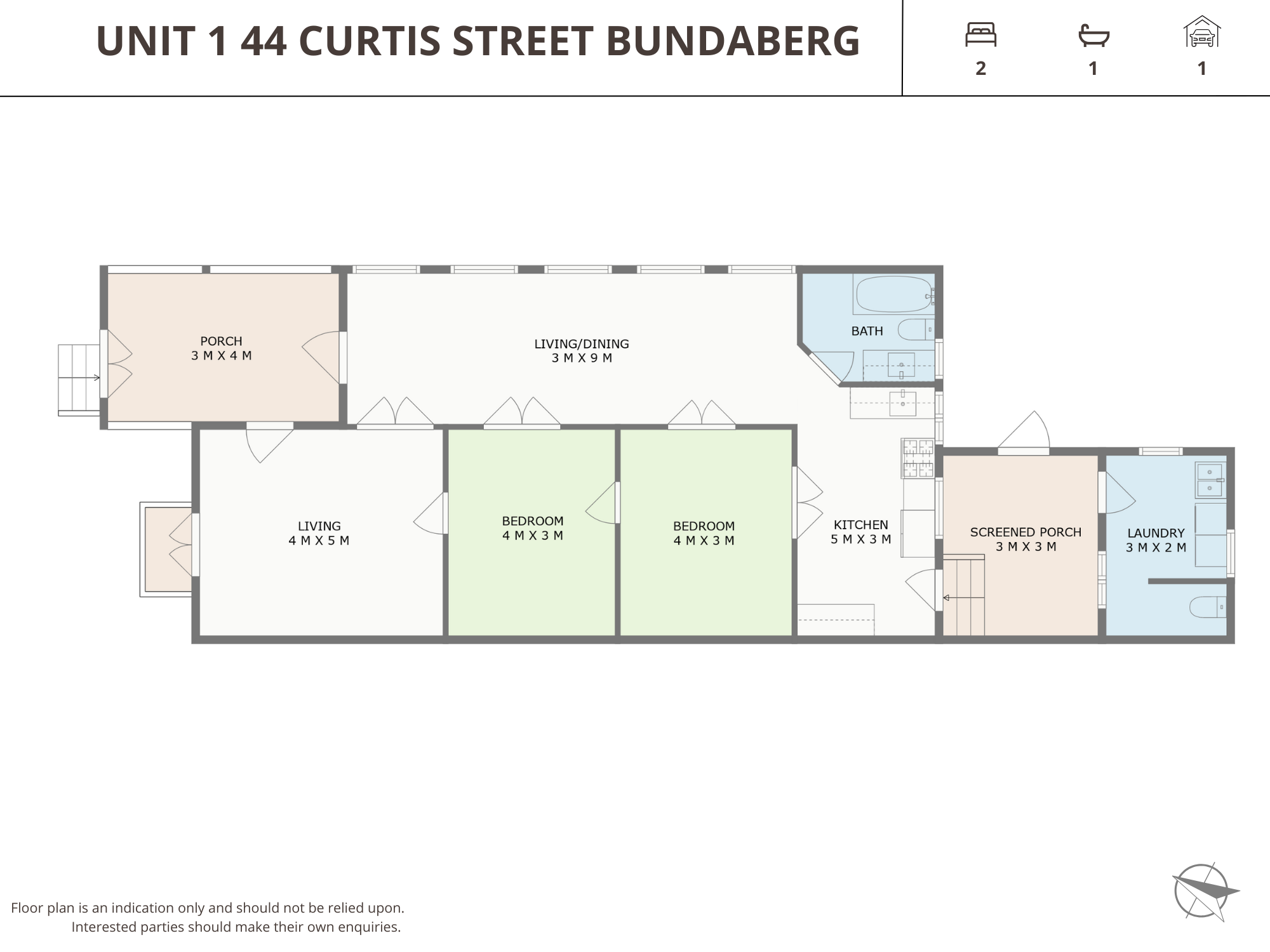 • Duplex on one title (2x 2 bed units)