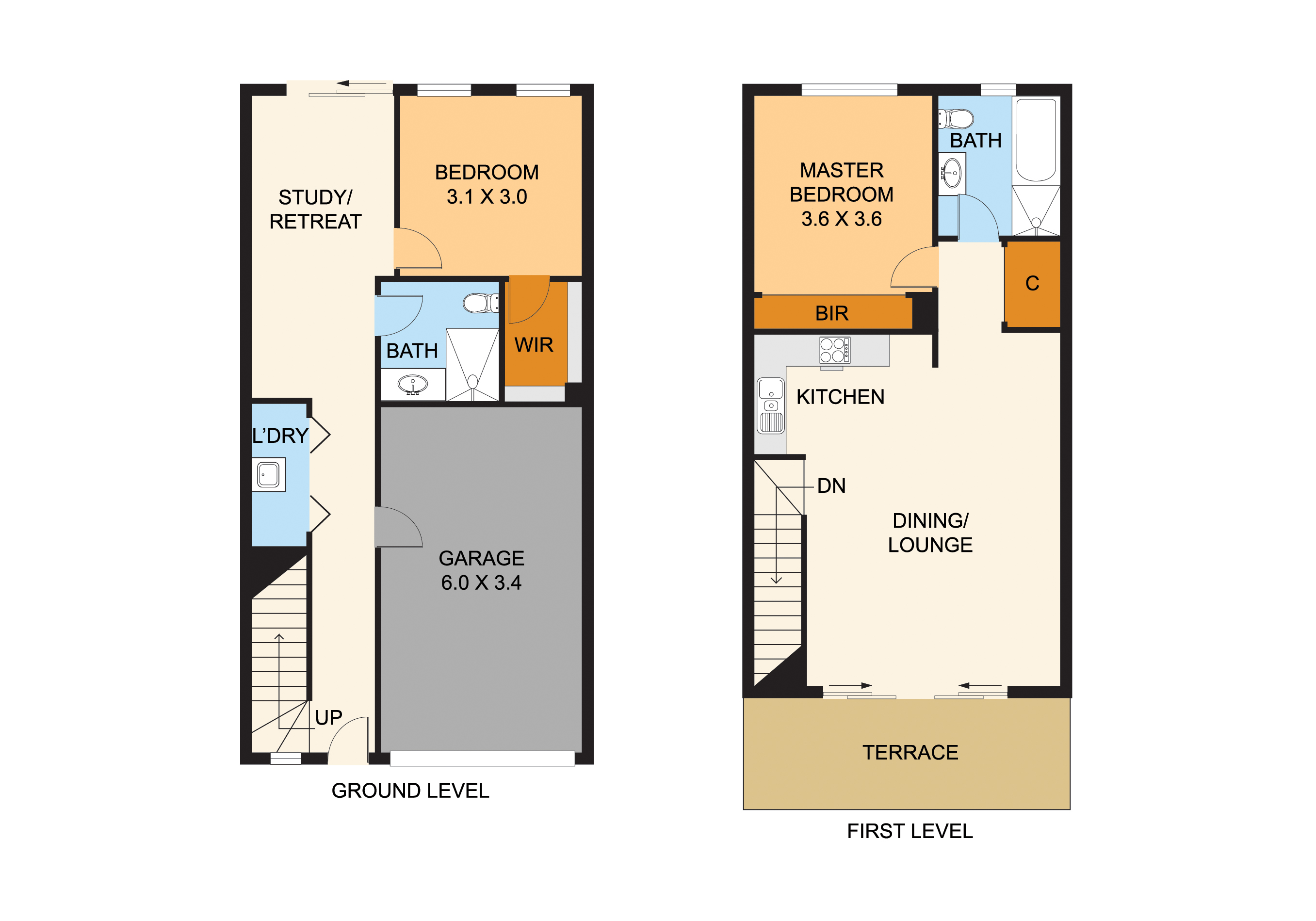 On the first level you'll find the open plan lounge/dining with private balcony, kitchen with stainless steel appliances including dishwasher and plenty of storage. Upstairs is also where you'll find the second bedroom with built in robe and main bathroom with shower and full-sized bath, a great inclusion you don't see often in townhouses.