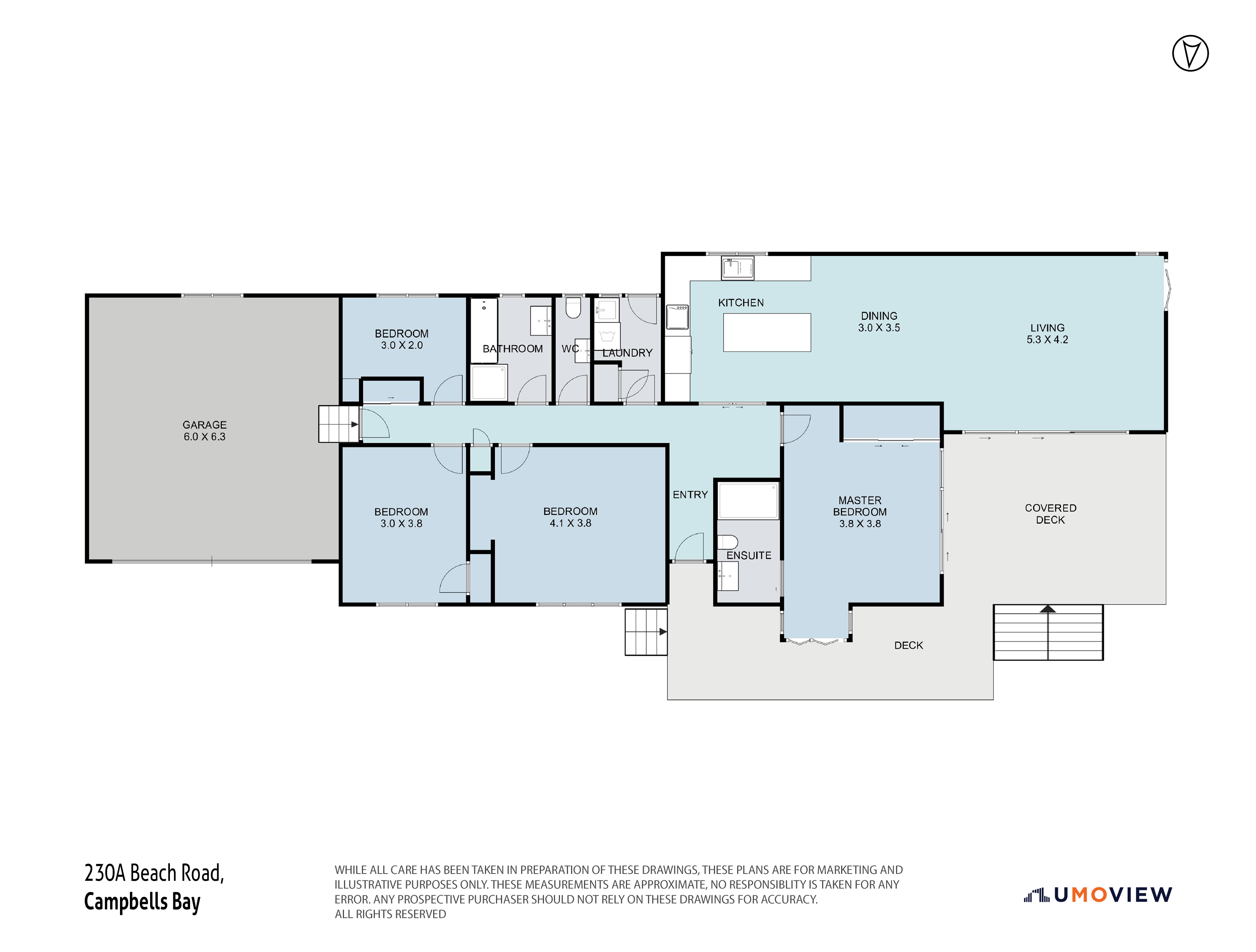 This beautifully presented north-facing, block, brick and cedar home is just moments from sparkling Campbells Bay beach and playground and is set on a generous 778 square metre private section.
