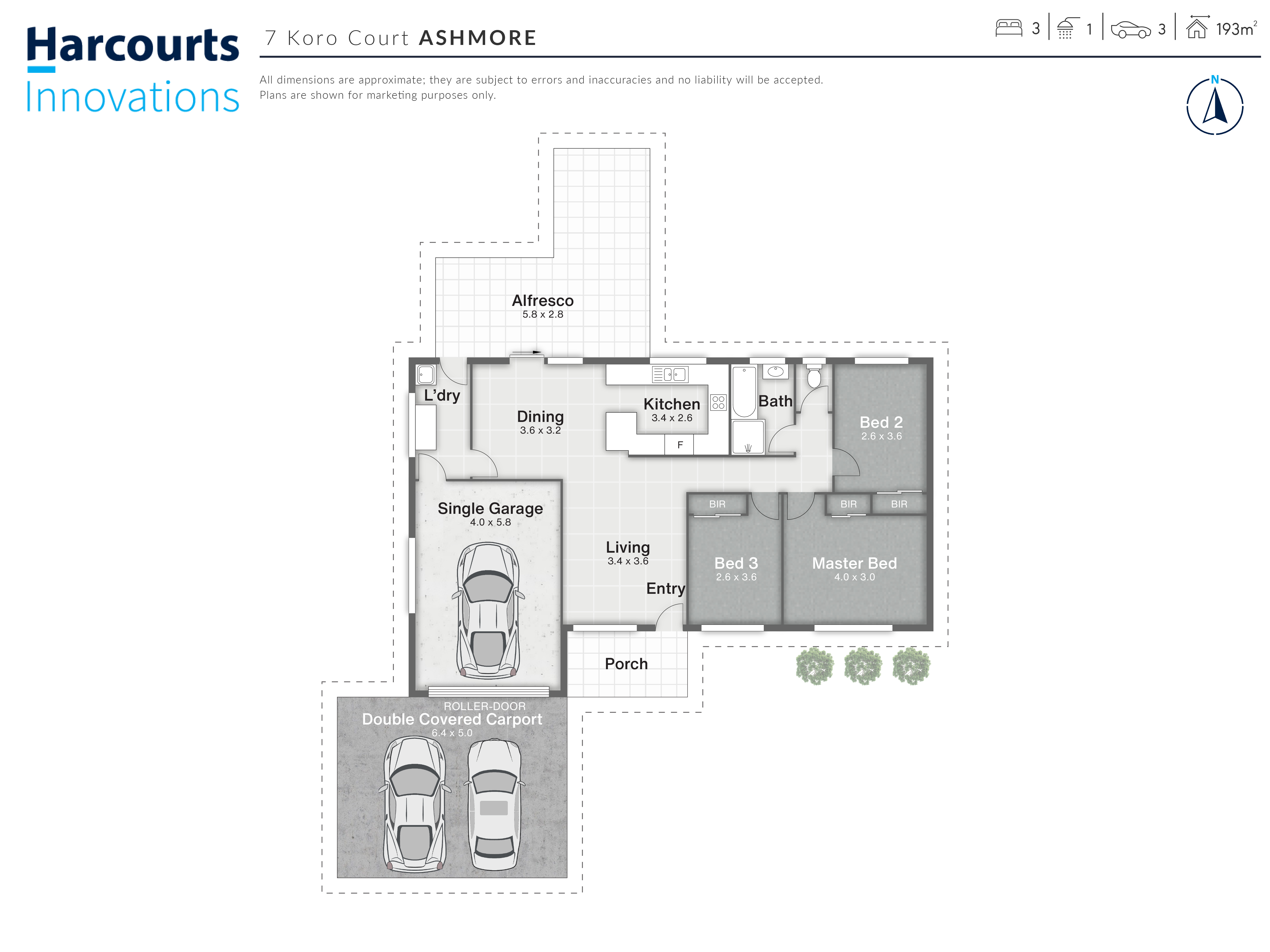 • Additional double carport.