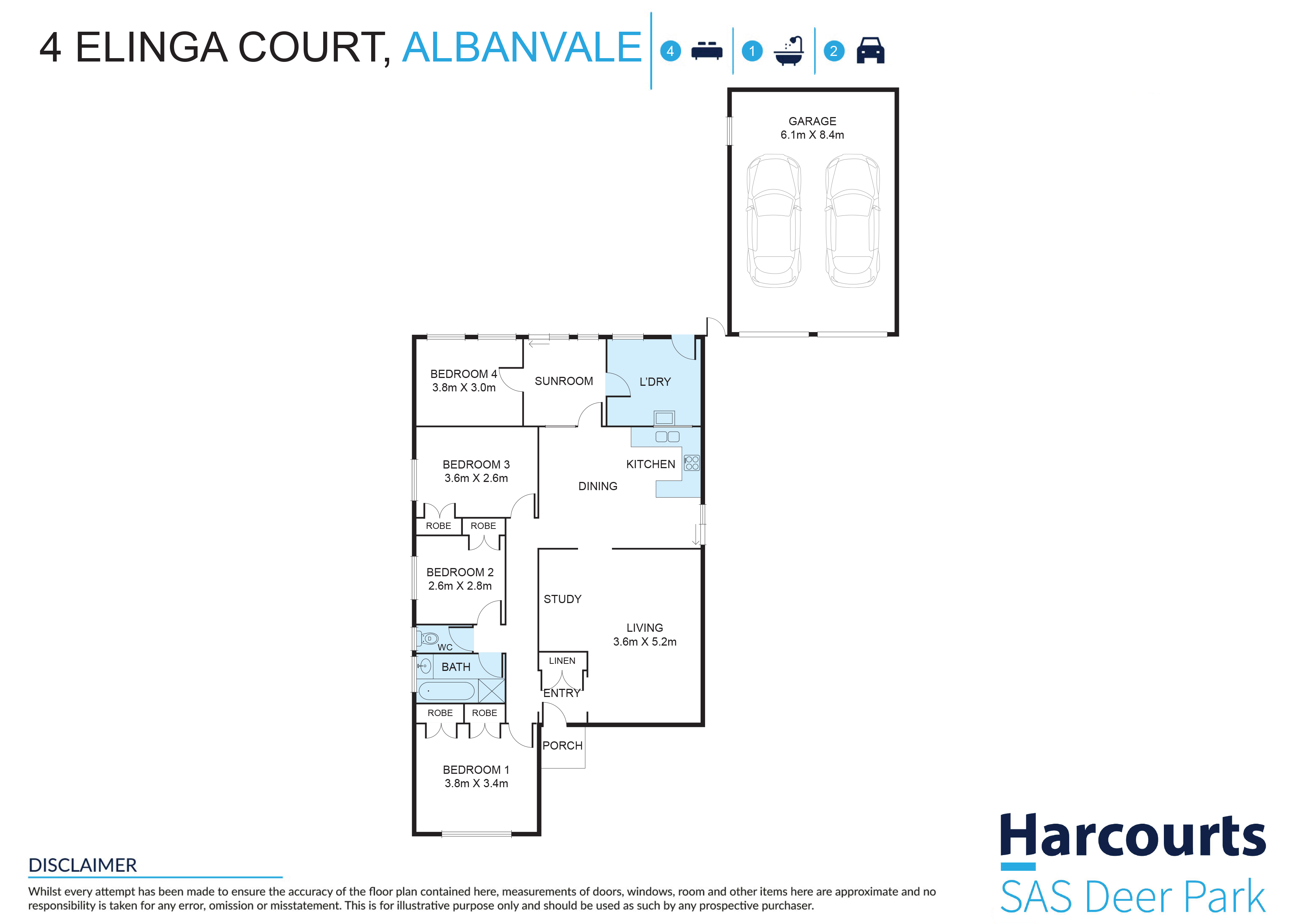 DISCLAIMER: While all care has been taken to ensure the information provided herein is correct, Harcourts SAS Deer Park takes no responsibility for any inaccuracies. Accordingly all interested parties should make their own enquiries to verify the information, including and not limited to land size.